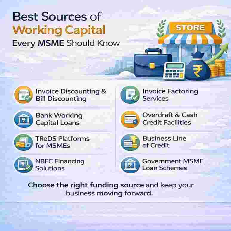 Best Sources of Working Capital Every MSME Should KnowWorking capital is the lifeline of every MSME. It helps manage daily operations, pay suppliers, maintain inventory, and handle unexpected expenses. Choosing the right source of working capital ensures steady cash flow and supports business growth.Invoice Discounting & Bill DiscountingInvoice Factoring ServicesBank Working Capital LoansOverdraft & Cash Credit FacilitiesTReDS Platforms for MSMEsBusiness Line of CreditNBFC Financing SolutionsGovernment MSME Loan Schemeshttps://www.rxil.in/sources-of-working-capital/ Best Sources of Working Capital Every MSME Should KnowWorking capital is the lifeline of every MSME. It helps manage daily operations, pay suppliers, maintain inventory, and handle unexpected expenses. Choosing the right source of working capital ensures steady cash flow and supports business growth.Invoice Discounting & Bill DiscountingInvoice Factoring ServicesBank Working Capital LoansOverdraft & Cash Credit FacilitiesTReDS Platforms for MSMEsBusiness Line of CreditNBFC Financing SolutionsGovernment MSME Loan Schemeshttps://www.rxil.in/sources-of-working-capital/0 Kommentare 0 Geteilt 37 Ansichten 0 BewertungenBitte loggen Sie sich ein, um liken, teilen und zu kommentieren!