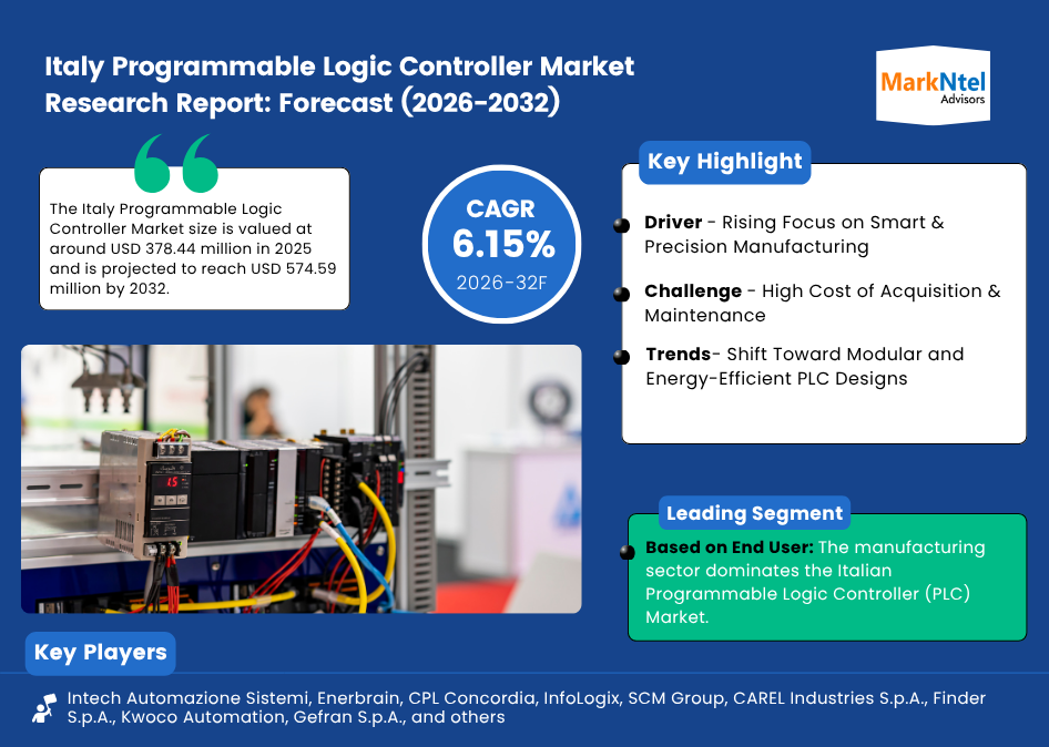 MarkNtel Advisors, a leading market research and consulting firm, has announced the release of its latest study titled Italy Programmable Logic Controller Market Research Report: Forecast (2026–2032). This report provides a detailed assessment of the Italy Programmable Logic Controller Market, covering its evolving dynamics, emerging trends, key growth drivers, major challenges, and competitive landscape.