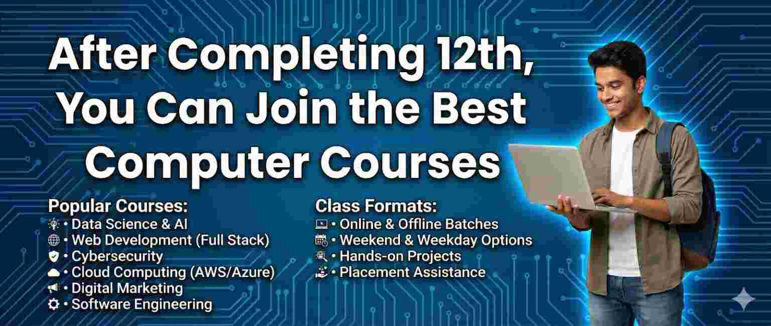 Choosing the right career after completing your 12th is one of the biggest decisions for any student. If you are planning to build a professional future in the digital and technology field, joining a computer course right after 12th is the smartest choice. The demand for skilled computer professionals is increasing every year, and companies prefer candidates who have strong technical knowledge along with practical skills.