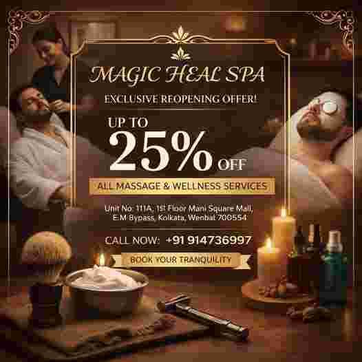 Magic Heal Spa is conveniently located at Unit No. 111A, 1st Floor, Mani Square Mall, E.M. Bypass, Kolkata – 700554, making it easily accessible for anyone looking to escape the hustle of city life. Whether you’re visiting for a quick refresh or a complete wellness session, we promise a soothing experience that leaves you feeling renewed.