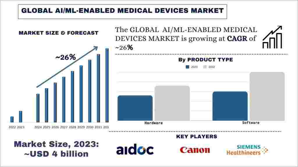 With expanding applications across diagnostics, treatment, monitoring, and clinical decision support, AI/ML-enabled medical devices are expected to witness substantial growth in the coming years. However, challenges related to data security, regulatory compliance, safety validation, and ethical considerations may influence the pace of adoption. Despite these hurdles, continuous innovation and supportive regulatory frameworks are expected to drive long-term market expansion.