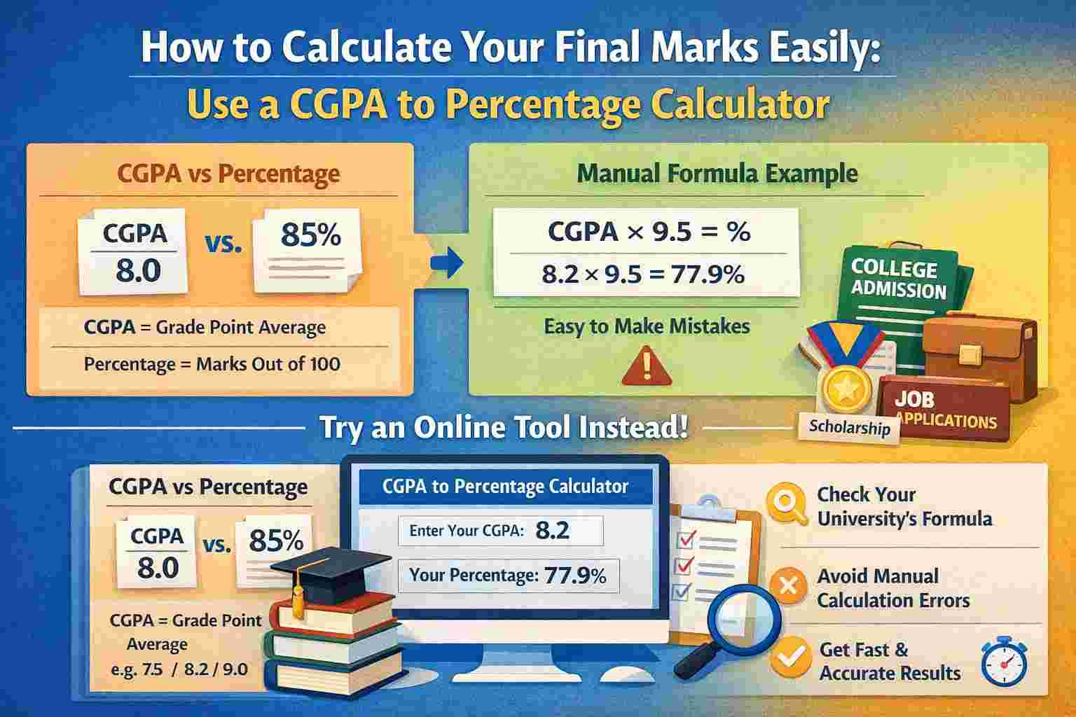 CGPA and percentage both measure academic success. The format may differ, but accuracy always matters. A small calculation error can create big problems later.
