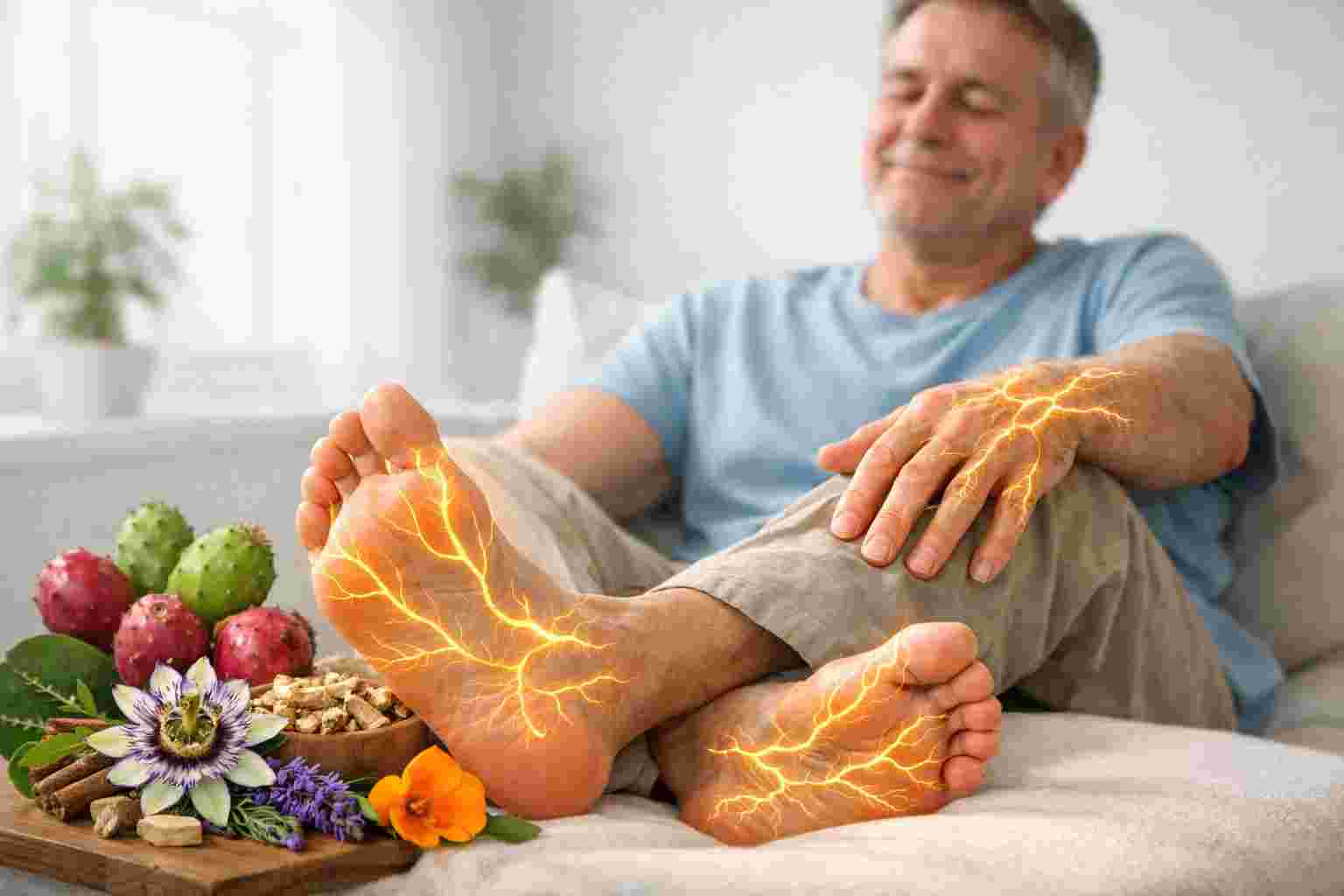 Relaxing herbs may help reduce tension and stress that affect nerve sensitivity.