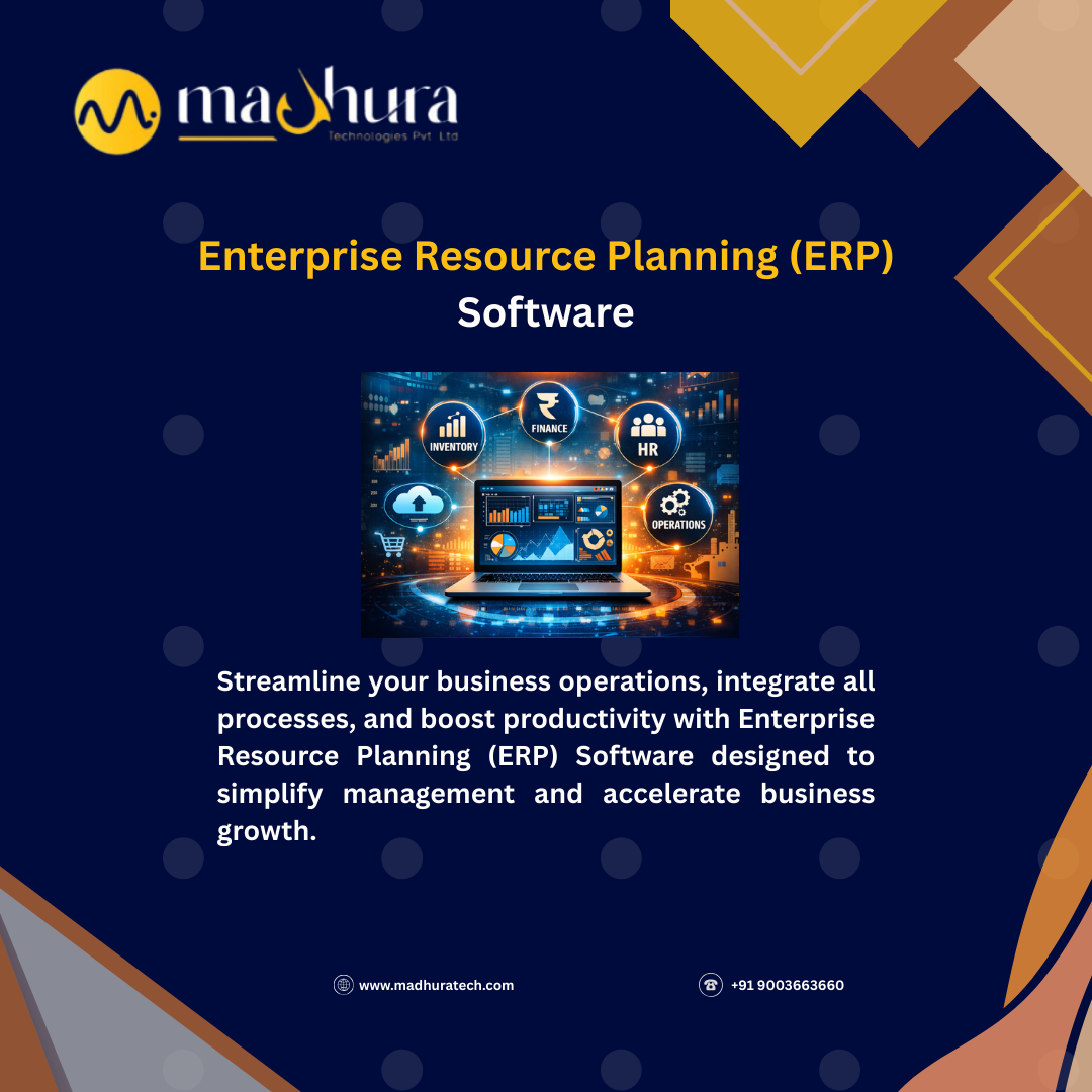 Enterprise Resource Planning (ERP) Software in Coimbatore – Madhura Technologies helps businesses manage operations efficiently through a centralized digital system. It integrates finance, inventory, HR, and sales into one platform for better control. Companies can reduce manual work and improve accuracy with automation. With scalable features and real-time insights, organizations can streamline workflows, enhance productivity, and support sustainable business growth effectively.