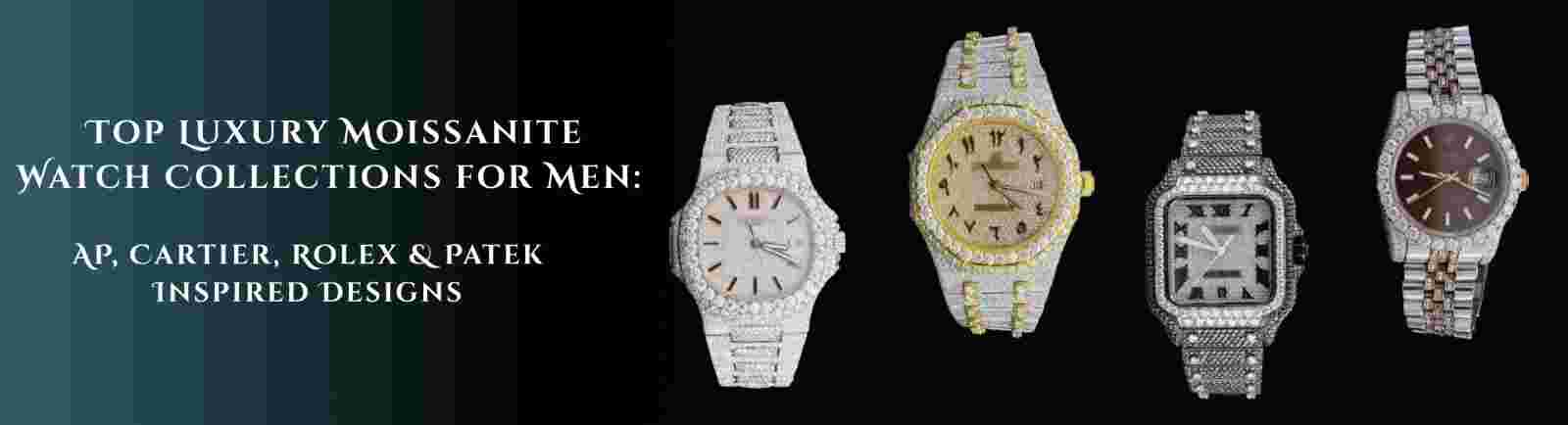 Moissanite Watch Collections for Men: AP, Cartier, Rolex & Patek Inspired