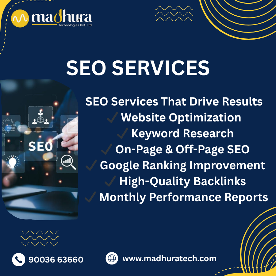 Madhura Technologies offers expert SEO services in Coimbatore to help businesses achieve higher search engine rankings and better online visibility. Our SEO strategies are carefully planned to drive organic traffic, improve website performance, and reach the right target audience. With a focus on ethical and result-oriented practices, we ensure long-term digital growth for your business.