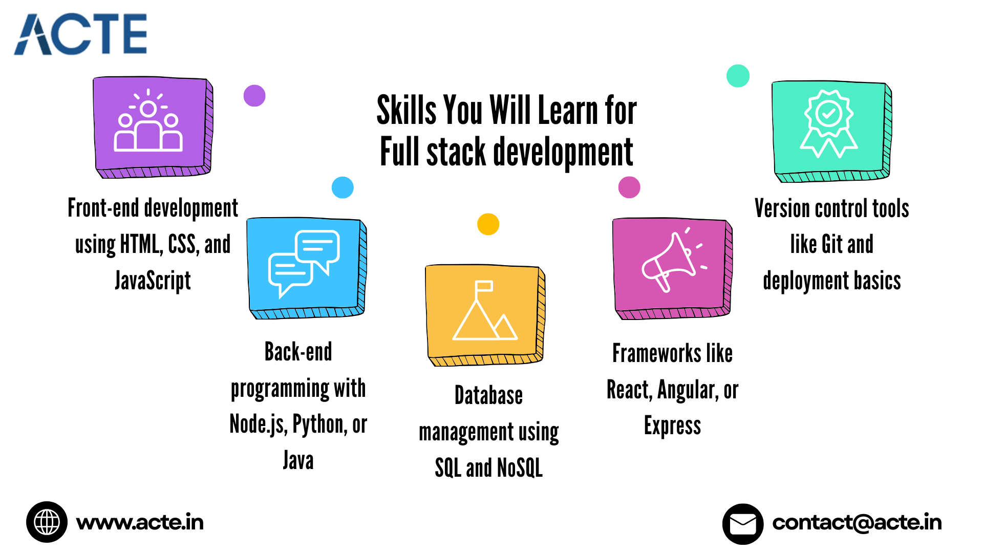 Full stack development courses generally focus on essential technical skills: