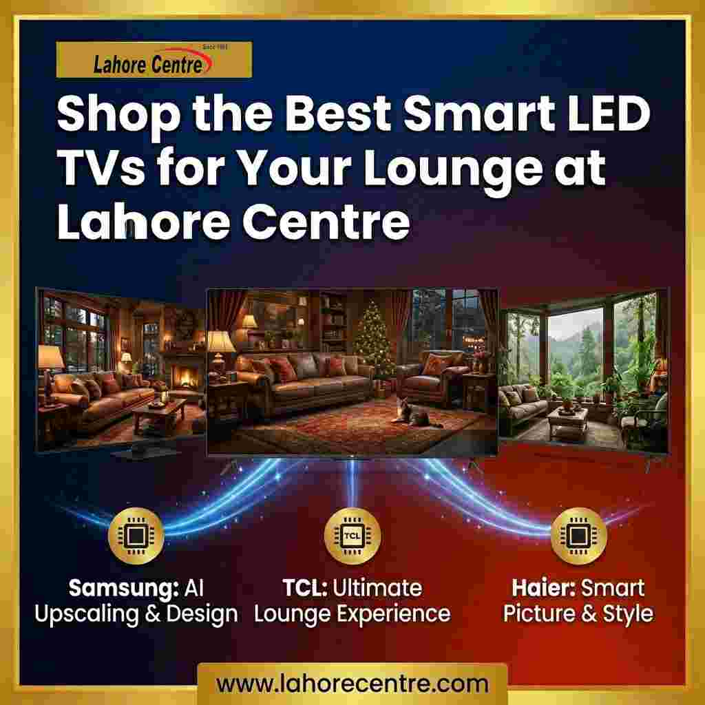 Buy the best Smart LED TVs for your lounge at Lahore Centre. Get expert advice, genuine warranties, and the top brands like Samsung, TCL, and LG.