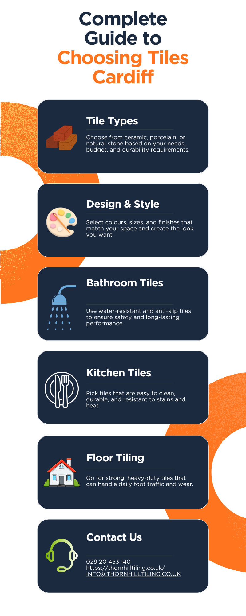 A simple and informative infographic highlighting the essentials of choosing the perfect tiles in Cardiff. From tile types and design trends to expert installation tips, it helps homeowners make smart and stylish decisions for any space.