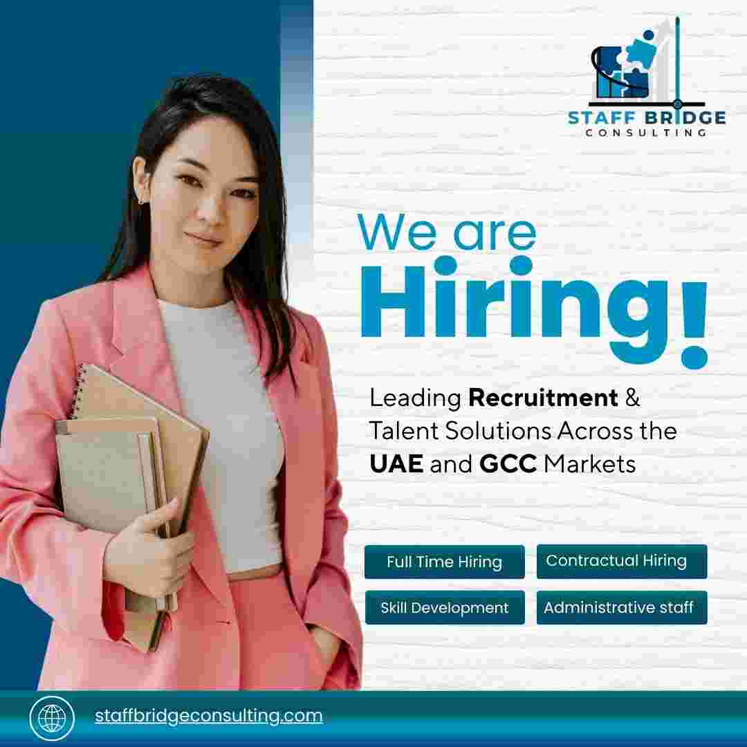 Staff Bridge Consulting: Premier Staffing Solutions in UAE & GCCStaff Bridge Consulting is a reliable partner of organizations that need to have effective and scalable workforce solutions in the UAE and GCC. Businesses are also able to develop powerful teams and coordinated workforce using expert Full time Hiring, flexible Contractual Hiring Solutions, streamlined Recruitment Process Outsourcing, strategic Enterprise Solutions, and technology-driven HRMS. Such broad solutions assist organizations to become more efficient in recruitment, operational productivity and attain sustainable growth in competitive markets.📞 For More Information Contact:🏢 Staff Bridge Consulting📧 connect@staffbridgeconsulting.com📱 +971 50 8144 072📍 Office No. 1E1 - 132 Abu Baker Al Siddique St - Deira, Dubai, UAE