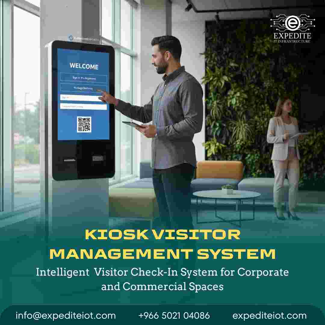 Effortless Check-Ins: Kiosk VMS Solutions in BahrainKiosk VMS are transforming visitor management in Bahrain, by providing efficiency, automation and increased protection. The streamlined Self-Service Check-In/Check-Out, secure Visitor Registration, instant Badge Printing, proactive Notifications and Alerts, intelligent Visitor Analytics and Reporting, reliable Emergency Features and strong Security and Compliance gives businesses the opportunity to not only achieve operational excellence but also enhance safety. Smarter, safer, more efficient facility managements will be a crucial part of the change in the organizations as organizations in Bahrain continue to modernize and use intelligent kiosk systems.Expedite IT info@expediteiot.com+966 502104086Office No 01, Conference Building (Kirnaf Finance), Abi Tahir Al Dhahabi Street, Al Mutamarat, Riyadh 12711, Saudi Arabia