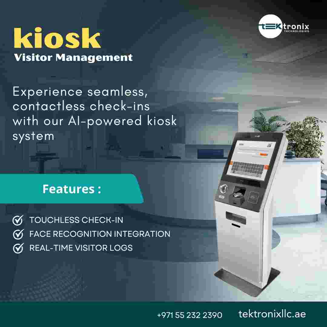 Smart Touchless Visitor Kiosk Solutions for Modern UAE WorkplacesTouchless Visitor Management Systems kiosk technology has been an essential part of modern UAE workplaces. It provides safety, efficiency and a more enjoyable experience for visitors. Digital visit management solution when combined with kiosks for a visitor management systems kiosk facilitates the visitor registration and provides the accuracy of visitor identity. The automated the process of visitor badge generation and visitor badge printing increase the security and professionalism of visitors, while real-time visitor tracking improves the monitoring. Tektronix Technology Systems Dubai-Head Officeconnect@tektronixllc.ae+971 50 814 4086+971 55 232 2390Office No.1E1 | Hamarain Center 132 Abu Baker Al Siddique Rd – Deira – Dubai P.O. Box 85955